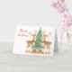 Santa Claus reindeer helpers near Christmas tree whimsical Folded Greeting Christmas Card.