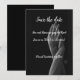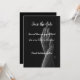 Faites une déclaration audacieuse et élégante avec cette carte de sauvegarde de date qui présente un fond noir épuré et des lettres blanches nettes. Le design à contraste élevé dégage de la sophistication, parfait pour les événements de gala, les célébrations modernes ou les thèmes de mariage contemporains. Son style minimaliste garantit que les détails de votre mariage sont clairs et captivants, préparant le terrain pour un événement inoubliable. Entièrement personnalisable pour s'adapter à votre vision unique, cette carte est un moyen élégant et mémorable d'annoncer votre jour spécial.