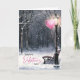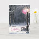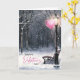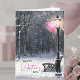 Célébrez l'amour avec une touche de magie hivernale. Cette carte de Saint-Valentin romantique présente une scène de parc enneigé de rêve avec de la neige qui tombe doucement, un lampadaire qui brille et un ballon en forme de cœur rose vif qui flotte doucement à côté d'un banc. Le fond paisible de la forêt hivernale crée un contraste chaleureux et cosy qui capture parfaitement une romance sincère.
