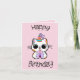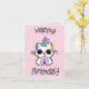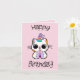 ‘Happy birthday’ in katachtig lettertype en een schattige kat met een feesthoedje en een cadeau!