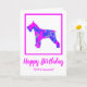 Célébrez votre journée spéciale Schnauzer en beauté avec cette carte d'anniversaire amusante et personnalisée ! Cette carte de chien rose et bleu présente une adorable silhouette abstraite de race Schnauzer et est parfaite pour ajouter une touche personnelle - customisez à l'intérieur et à l'extérieur avec votre propre message, ce qui le rend spécial pour votre ami furry.