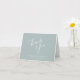 Cette élégante carte de remerciements minimaliste moderne présente un élégant script d'écriture manuscrite en blanc sur un arrière - plan vert de verre de mer. Ajoutez les noms du couple et la date du mariage dans la police sans serif.
