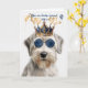 Un chien de Sealyham Terrier porte une couronne et des lunettes de soleil pour envoyer des voeux d'anniversaire à un roi à leur père le plus génial.