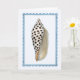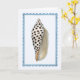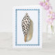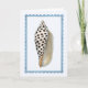 This greeting card features a watercolor portrait of a Junonia shell with a frilly framed border against a cool white background.