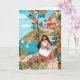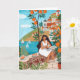 Carte Seaside Café Woman Illustration Art Greeting Card