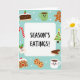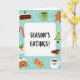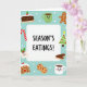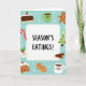 This digital illustration captures the joy and delicious food of the holiday season. In the middle, a white banner says "SEASON'S EATINGS!" in a hand-drawn style, giving a friendly feel to the image. Around this message are cute holiday treats and symbols on a light blue background with white snowflakes. The scene is full of happiness, warmth, and fun. There's a cheerful green mug with hot cocoa next to a smiling gingerbread man, both looking content. Other goodies like a candy cane, a tiny Christmas tree with frosting and decorations, and various cookies tempt you with their sweet offerings. A hot cocoa cup with a smile and holly matches the joy of a fruitcake slice. The simple, flat design and soft shading create a warm and inviting look, perfect for celebrating and looking forward to tasty treats. This card is a lovely way to share holiday cheer with others! 🎅🏼🎄🎁