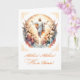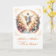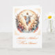 Célébrez la joie de Pâques avec cette superbe carte chrétienne représentant une image radieuse du Christ ressuscité. Entouré d'une auréole lumineuse, Jésus monte au ciel entouré d'anges et de saints, exhalant une lumière divine et l'espérance. Des coins ornementaux subtils encadrent le motif circulaire, tandis que de délicates fleurs s'épanouissent gracieusement à la base, symbolisant le renouveau et la beauté de sa résurrection. Le recto proclame : « Alléluia ! Alléluia ! Il est ressuscité ! » et le message à l'intérieur commence par l'affirmation sincère : « Il est vraiment ressuscité ! » Cette carte est un choix parfait pour partager les bénédictions de Pâques avec vos proches, offrant un rappel significatif de la joie sacrée de la saison.