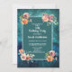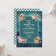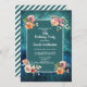 Turquoise et bleu marine grunge-texturé seizième anniversaire invitation de fête avec délicat rose et pêche floral. L'arrière de cette invitation est un motif en diagonale turquoise et blanc rayé.