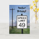 A fun card for that special someone who has, perhaps, entered that vague dimension of "over the hill." The design features the photo of a speed limit sign on country road. You choose the age number to designate the "speed limit." When you select “Personalize this design” you will be offered options to easily change the text (wording, plus type font, color, size, position) and to possibly edit the design elements with changes you may want to make.
