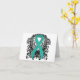 Ruban turquoise avec ailes d'anges et motif de figues. Le ruban turquoise est la conscience de l'Agoraphobie, Trouble d'anxiété, Maladie de Batten, Trouble d'Identité Dissociative, Dysphasie Ectodermique, Allergies Alimentaires, Fragile X, Myasthenia Gravis, Trouble Obsessif-Compulsif, Cancer des ovaires, Victimes du tsunami, Syndrome de Tourette, Trouble Panique, Maladique Polycystique, Syndrome Ovarien, Scléroderme, Trouble De Stress Posttraumatique, Pal Supranucléaire Progressif. Le mois d'avril est le mois de la sensibilisation aux troubles du stress post-traumatique, le mois de la sensibilisation aux viols et aux agressions et le mois de la sensibilisation à l'abus de substances. Mai est le mois de sensibilisation aux allergies alimentaires. Juin est le Mois de la sensibilisation aux Sclérodermes et le Mois de la sensibilisation aux Sclérodermes et aux Myasthénies Gravis. Septembre est le Mois de sensibilisation au cancer de l'ovaire et le Mois de sensibilisation au syndrome ovarien polykystique. Octobre est le mois de sensibilisation aux troubles anxieux.