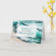 Carte de proposition personnalisée sur le thème côtier "Serez-vous ma fille de fleurs" mariage. De jolies vagues turquoise tombent sur une plage de sable. Police élégante.
