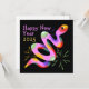 Cette élégante carte de Nouvel An présente un serpent excentrique avec des feux d'artifice colorés sur un arrière - plan noir.