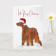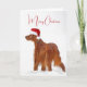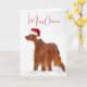 Etonneur irlandais dans la neige avec casquette du Père Noël et flocons de neige. Le texte peut être modifié.