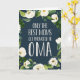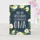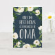 Seules les meilleures mamans sont promues à Oma ! Célébrez la fête des mères, la fête des grands-parents ou une nouvelle grand-mère à être avec cette carte de voeux douce portant le sentiment en lettres blanches sur un arrière - plan bleu marine agrémenté de fleurs d'aquarelle blanches et d'ivoire et de feuillage botanique vert luxuriant. Ajoutez une photo et un message pré-imprimé en option à l'intérieur pour créer un accueil personnalisé unique pour Oma.