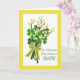 Carte de voeux de la Saint Patrick pour une baby-sitter spéciale. Conception gaie et colorée de trèfle à trois feuilles, sprigs de forsythie jaune et de saules de chatte sur les branches, le tout attaché dans un arc du printemps (pas réel). Copyright © Shoaff Ballanger Studios, 2021.