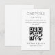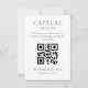 Capture the memories of your special day with this minimalist wedding design that features a stylish font and QR code. Invite your guests to scan the code and upload their photos to a shared online album, ensuring that all the special moments are captured and shared with loved ones. The clean and simple design of the card complements any wedding theme, making it a versatile and stylish choice. The inclusion of a QR code adds a modern touch that is sure to impress your guests and enhance the experience of your wedding day.