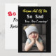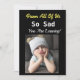 Si triste ! Envoyez un message de la part de tous à une personne spéciale qui part à la retraite. Regardez au dos de la fille grincheuse pour lire le message positif "si heureuse" pour sa retraite. Un schéma de couleurs noir et blanc moderne envoie des félicitations drôles et chic.