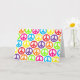 Plusieurs panneaux de paix multicolore signe la carte de voeux.