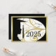 Une silhouette d'un jeune homme dans son casquette et sa robe. Des motifs floraux dans l'arrière - plan. Le dos a un arrière - plan noir avec des lettres d'or pour les annonces de remise de diplômes.