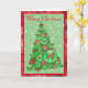 Carte de vœux moderne abstraite pliée avec un arbre et une silhouette de race de Border terrier, ruban et boules de Noël en rouge, vert et blanc. Le vœu de Joyeux Noël à l'intérieur peut être modifié selon vos souhaits. Vous pouvez même ajouter un message d'amour et vos noms sous le vœu à l'intérieur de la carte de fête.