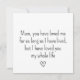 Célébrez la journée spéciale de maman avec notre carte simple de fête des mères ! Avec un poème mignon et la possibilité de personnaliser votre message sincère à l'intérieur, cette carte est le moyen idéal de dire merci à votre maman chérie. Montrez-lui combien elle compte pour vous avec ce geste attentionné et personnalisé le jour de la fête des mères.