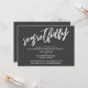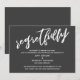 La particularité de cette suite est due à la police de caractères moderne et manuscrite utilisée pour les phrases d'accentuation. Dans le cas où vous auriez besoin d'informer vos invités que votre mariage a été annulé, cette carte propose une option audacieuse et accrocheuse. Dans ce modèle, la police de caractères manuscrite a été utilisée pour créer un graphique simple représentant le mot "regretfully". Utilisez les champs de modèle pour ajouter vos informations personnelles et faire de ce design moderne et unique le vôtre. Le fond uni peut être changé en n'importe quelle couleur de votre choix. N'hésitez pas à nous contacter pour toute demande spéciale ou pour une aide à la personnalisation. // 100 //