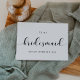 Une carte-cadeau simple et minimaliste pour écrire un message personnel et sincère à votre demoiselle d'honneur le jour de votre mariage. Entièrement personnalisable avec vos couleurs préférées (texte et arrière-plan). Vous pouvez ajouter un message au verso ou le laisser vide si vous préférez écrire votre message à la main plus tard.