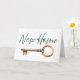 Souhaitez bonne chance à la famille ou amis dans leur nouvelle maison avec cette carte simple et charmante. Le design comporte des mots "New Home" en élégant écriture verte, et un design classique de clé de porte. Le message à l'intérieur est "Bonne chance dans votre nouvelle maison", et peut être customisé.
