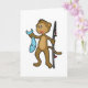 Carte Singe à la pêche avec une canne à pêche et un pois