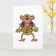 Un petit singe brun portant une chemise tropicale et des leu fleuris de conception est décrit sur les T-shirts tropicaux personnalisables de singe de Luau, tasses, mousepads, autocollants, boutons, et plus.