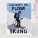 Ski Just Go With The Flow Skiing Card design original par Nisha Prabhu. Allez sur les pistes et embrassez l'excitation avec notre Carte de Ski "Just Go With The Flow"! Parfait pour tous les amateurs de ski, ce design ludique reflète l'esprit de liberté et d'aventure sur la montagne. Que vous envoyiez de bonnes vibes à un skieur ou fêtiez un voyage de ski mémorable, cette carte est une façon délicieuse de partager la joie du pays des merveilles hivernales. Grâce à ses graphismes accrocheurs et son message de motivation, il est sûr d’inciter quiconque à glisser sans effort à travers les sentiers poudreux. Faites de chaque message une journée de ski aussi excitante que la journée sur les pistes - prenez votre carte de ski "Just Go With The Flow" dès aujourd'hui !