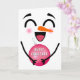 Venez dans l'esprit de Noël avec cette jolie carte de Noël de bonhomme de neige souriant. Conçu avec un bonhomme de neige aux joues roses et sourire joyeux tenant un ornement, cette carte est sûr d'apporter de la joie à la fois à la famille et aux amis. Personnalisez-le pour un cadeau de vacances unique que tout le monde aimera.