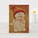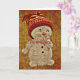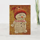Un mignon petit bonhomme de neige dans un casquette tricoté rouge posé sur un arrière - plan brun. Un design hivernal rustique et adorable. La personnalisation est facultative.