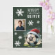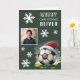 Score big this holiday season with our festive and personalized Soccer Ball Santa Hat Christmas Card! This delightful card features a classic black and white soccer ball adorned with a cheerful Santa hat, set against a charming green background with falling snowflakes. A special photo frame allows you to easily add your child's picture, making it a truly unique keepsake. Customize the 'MERRY CHRISTMAS OLIVER' text to include any name, celebrating your little football fanatic. Perfect for sending holiday greetings to family and friends, this card is sure to bring smiles and show off their love for the game during Christmas.