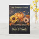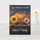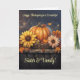 Fleurs, feuilles et citrouilles dans un cadre extérieur à la brise douce. Une charmante carte Thanksgiving pour votre soeur et sa famille.