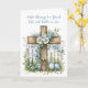 Cette charmante carte de Pâques présente une croix en bois sereine drapée de fleurs bleues douces, dressée contre une clôture blanche rustique entourée de fleurs assorties. Le choix parfait pour une soeur spéciale et son mari, il offre un message sincère pour célébrer la saison. À l'intérieur, les voeux chaleureux pour une Pâques joyeuse et un printemps plein de bonheur créent un sentiment agréable pour ce temps significatif de l'année.