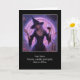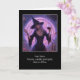 Halloween avec une sorcière et du vin ! Cette Happy Halloween carte a une belle sorcière qui semble un peu ennuyée avec des potions, des sorts et des bougies et plonge dans le vin.