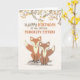 Cette carte est parfaite pour une fille qui aime les animaux et la nature. Souhaitez-vous un joyeux anniversaire à votre Soeur Sororité avec ces deux renards sucrés avec des feuilles sur les branches.