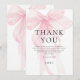 Soft Pink Bow Text Overlay Baby Shower Thank You. Available digitally and printed. Easily personalise the text to your details. A coquette pink bow is tinted in the background with the words overlaid on top.