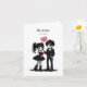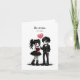 Une carte de Saint-Valentin sombrement mignonne pour les amateurs de tout ce qui est gothique. Ce design présente un adorable couple gothique habillé de noir, tenant un ballon en forme de cœur et des roses rouge sang, associé à la phrase ludique mais dramatique « Sois à moi. Ou sinon. »