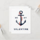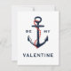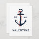 Carte de la Saint-Valentin avec une ancre bleu marine et des cœurs rouges formant une corde