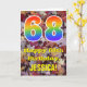 L'avant de ce design de carte coloré, automne-orienté, et rustique de salutation d'anniversaire comporte un grand nombre "68" ayant un motif inspiré par gradient de spectre d'arc-en-ciel. Il comporte également le message le "joyeux soixante-huitième anniversaire,", et un nom personnalisable. L'arrière - plan de l'avant de la carte comporte un motif tombé rustique de feuille d'automne. Les caractéristiques intérieures un message customisé de salutation d'anniversaire, ou pourraient peut-être être dégagées et sont parties du blanc si un message doit être écrit à la main à la place. Une carte d'anniversaire faite sur commande comme ceci pourrait être une manière d'amusement d'envoyer des souhaits d'anniversaire à quelqu'un qui célèbre leur soixante huitième anniversaires. [~Z0000384]