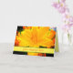 Un lys jaune orangé éclatant fleurit dans un jardin ensoleillé, les autres lys dans les tons jaune et orange. Vous pouvez personnaliser ceci avec un message personnalisé. La police de style script décontracté chevauche légèrement la bordure verte profonde. Les couleurs de ce design comprennent principalement des couleurs chaudes du feu ou du soleil : jaune, or, orange ; avec des tons vert feuillage et un peu de bleu cool dans le dos. Cette fabuleuse carte de voeux fleurie toute occasion est jaune pâle et vierge à l'intérieur. Un design animé et gai est idéal pour les jardiniers et les amateurs de fleurs, les amoureux de la nature. Photo art Sylvia Rose. Visitez-moi sur Twitter @Sylvia_FineArt. Bonne journée !