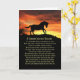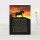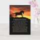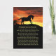 Carte solstice d'été avec un beau cheval en silhouette au long coucher du soleil de la plus longue journée. Un poème de bénédiction, envoie de grandes intentions sur ce merveilleux Sabbat.