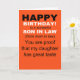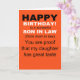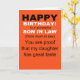 Son beau-fils prouve le bon goût de sa fille, dit le devant de cette drôle de carte d'anniversaire. La carte a été faite avec une belle-mère à l'esprit qui souhaite taquiner le mari de sa fille alors qu'il fête sa vieillesse d'un an. Le mignon message à l'intérieur évoque le doux compliment à l'avant d'une veste sournoise, mais incroyablement humoristique qui fera rire haut et fort le mari de la fille.
