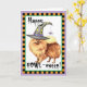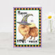 Envoyez les salutations de Halloween avec cette carte d'un Pomeranian mignon utilisant un casquette de sorcière décoré d'une araignée idiote. Grand pour des enfants de tous les âges qui aiment Poms et Halloween. Ayez un Hurlement-oween heureux !