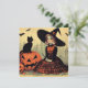 Carte Sorcière d'Halloween rétro et chat noir mignonne