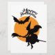 Carte sorcière d'Halloween sur bâton de brosse avec chau