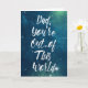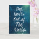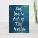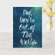 "Papa, tu es sorti de ce monde" lit le message sur cette carte en caractères blancs gras contre un ciel spatial plein d'étoiles bleues et vertes. Avec un graphisme de coordination à l'intérieur et un message de Fête des pères heureux, c'est la carte parfaite pour les papas qui aiment le stargazing et les films de science-fiction.