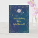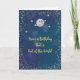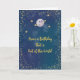 De cette carte d'anniversaire du monde avec un arrière - plan bleu, une planète avec un anneau de couleur or, et des étoiles de couleur or. L'écriture à l'intérieur peut être changée. Merci à Creative Fabrica pour certains des éléments du design.